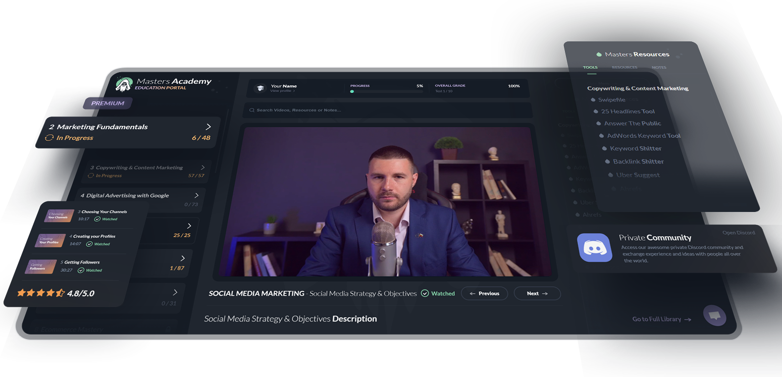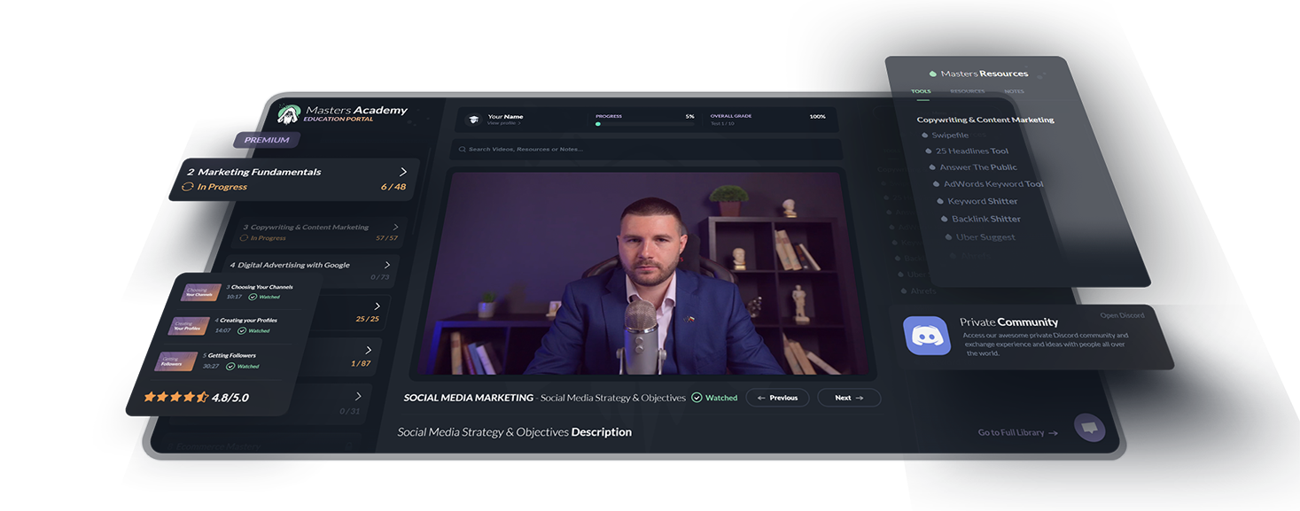 If you master Google’s ad platform you automatically learn 95% of every other ad platform out there. That’s why everyone starts with Google ads. Google is still the biggest and most powerful ad platform out there. It is also the most feature rich, the most customizable and the most technologically advanced. Everyone else is following. In Masters Academy’s course you will learn everything about Search ads, Display Advertising, YouTube ads, Google Shopping, Remarketing and in short every single little thing you could ever possibly know about Google ads. This is by far the most detailed and comprehensive course on Google ads in the world. After taking the course you will also be able to get all of the Google ads professional certifications.